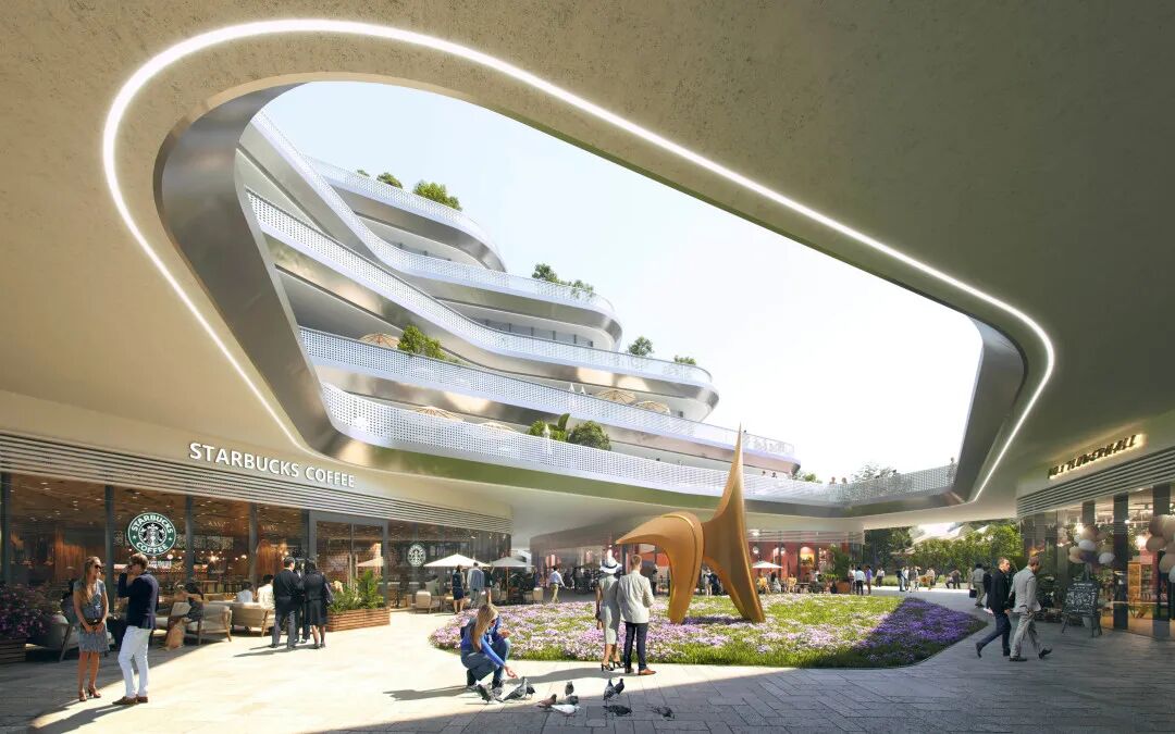 开放的园区以共享的空间塑造,把园区办公、论坛、商业、文化几大类功能,通过产与城的垂直融合,3级花园的有序整合,空中花园的立体植入,为高端金融人才提供具有共享社交属性的宜工作、宜交流、宜生活,有温度的金融客厅。